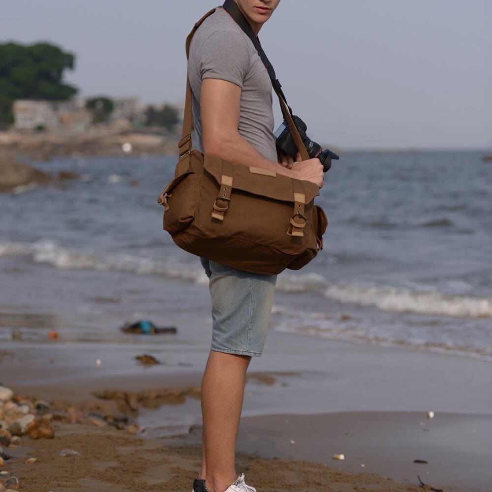 Caden F1 is a perfect combination of camera bag and leisure messenger bag. It can protect your camera against daily damage such as dust and scratches with its tough and durable exterior and padded anti-shock interior. Environmental-friendly and water-resistant material allows for excellent protection when the bag is used under awful weather. Spacious compartment lets you hold your personal items like 12-inch laptop, cellphone, iPad, etc. besides the camera.