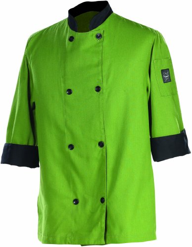 Chef Revival J134MT 24/7 Poly Cotton 3/4 Sleeve Fresh Chef Jacket with Black Trim and Flat Black Button, X-Large, Mint Green