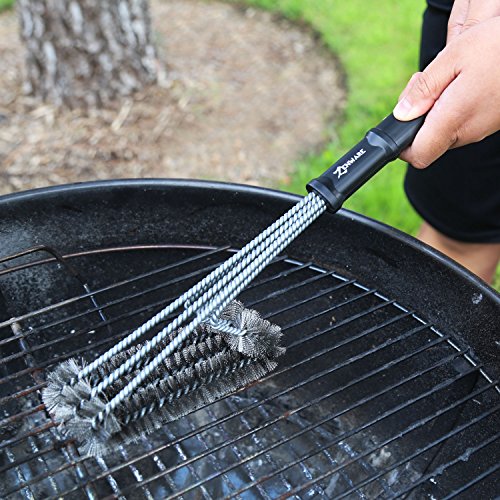 SAFE: The long handle will keep your hands safe from the heat and makes it easy to apply the pressure necessary to clean the grill. The ergonomic plastic grip incorporates a groove down the middle of the handle to rest your thumb and makes the cleaning job comfortable and stress-free. The stainless steel woven wire design of this grill cleaner greatly reduces the risk of bristles getting into your food.