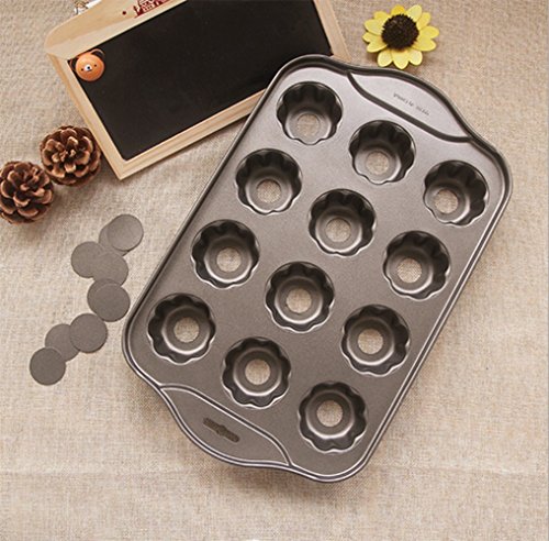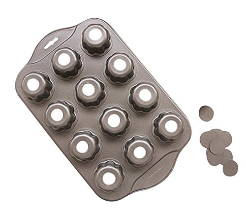 Studio : Astra Gourmet Publisher : Astra Gourmet Product Description The nonstick coating and removable bottoms enable you to easily release foods. This pan is perfect for quiches, tartlets, muffins, coffee cakes, hors d'oeuvres and more. This unique pan lets you create 12 petite individual serving cakes at a time. Features safe non-stick coating and pop out bottoms for easy removal. Made of Carbon Steel. 0