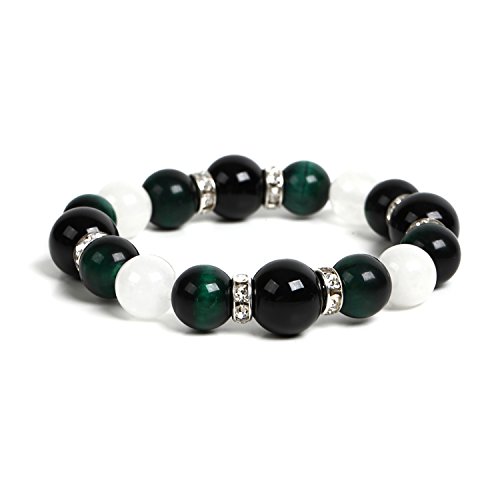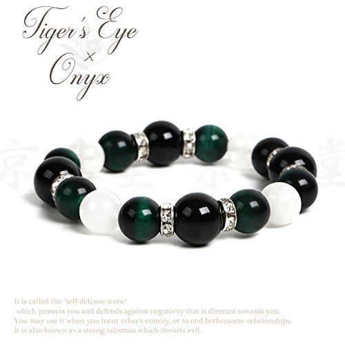 원본상품명: 【京珠堂】AAA オニキス×グリ?ンタイガ?アイ×白翡翠 12mm 天然石 ブレスレット
