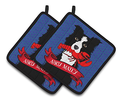 Caroline's Treasures Ahoy Matey Nautical Border Collie Pair of Pot Holders VHA3011PTHD, 7.5HX7.5W, Multicolor