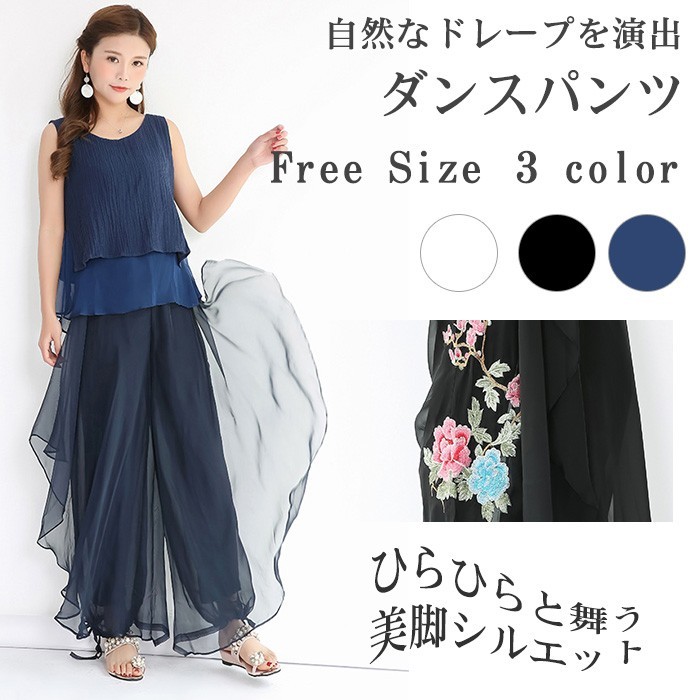 ★ご注意:こちらの商品はお客様がご入金後、メーカーから取り寄せさせて発送する予定です。ご入金からお届けまで約7営業日ほど時間がかかります。 ダンスパンツ ガウチョパンツ パンツ レディースパンツ 社交ダンス パンツ ベリーダンス パンツ ダンスウェア ダンス ズボン スカーチョ シフォン カジュアル パンツ ワイドパンツ スカーチョパンツ カジュアル スカーチョ 白 2タイプ 刺繍【パンツ単品】★素材:シフォン★生地:薄手★伸縮性:無し★カラー:黒 白 紺色※お客様ご使用のPC環境により商品画像のカラーが多少異なる場合があります。仕入時期により多少デザインなど異なる場合があります。ご了承ください。★サイズ(cm):F:総丈93cm/ウエスト60-88cm/ヒップ108cmモデル詳細:身長164cm 体重45kg スリーサイズ82-60-87cm※サイズは人の手によって測っているため、1-3cmの誤差がある場合がございます。予めご了承くださいませ。