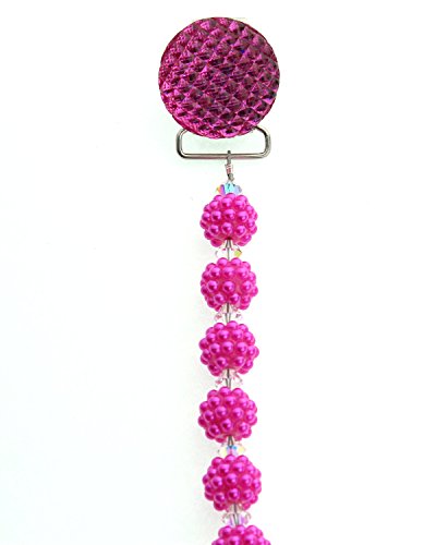 -. Title : Elegant Hot Pink Beads Quilted Crystal Keepsake Baby Girl Pacifier Clip 8 Inch (D8)