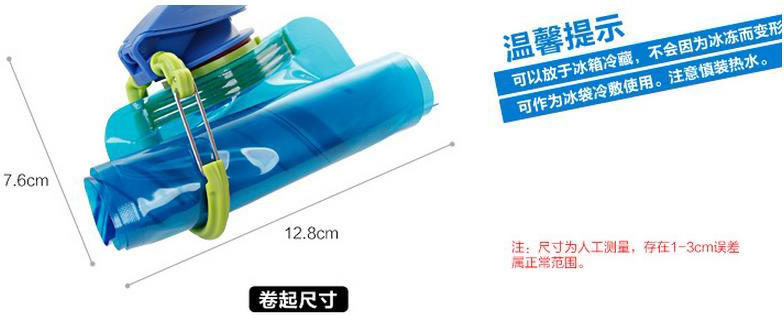 Bekukan Botol Air Minum Lipat ini di freezer dengan setengah kapasitas. Setelah beku, isi dengan air, siap untuk dibawa beraktifitas (bisa dijadikan ice-pack untuk kompres).