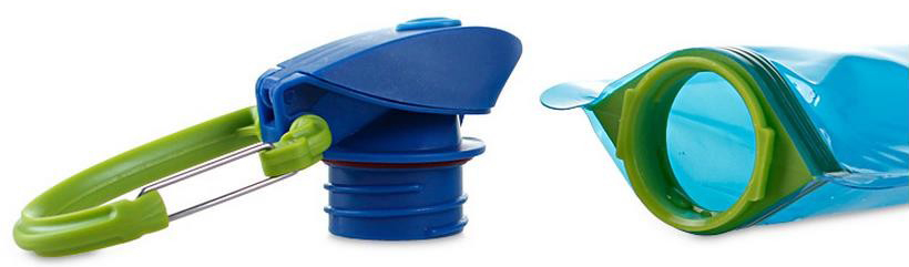 Terdapat sebuah gantungan karabiner yang dapat Anda gunakan untuk menggantung botol minum lipat ini ke tas Anda.