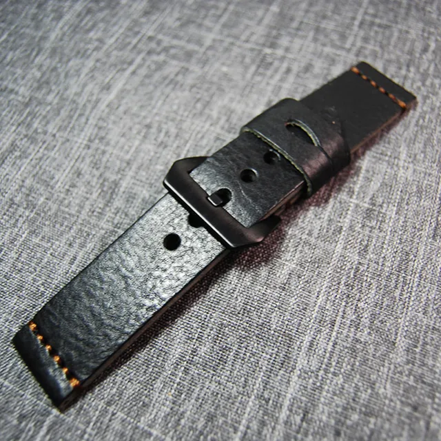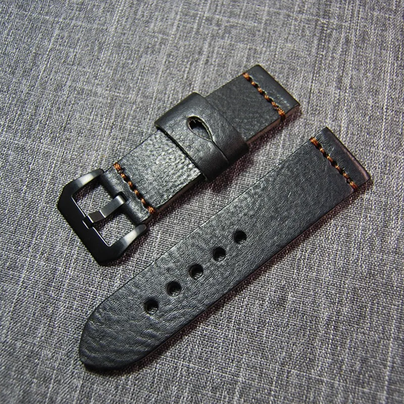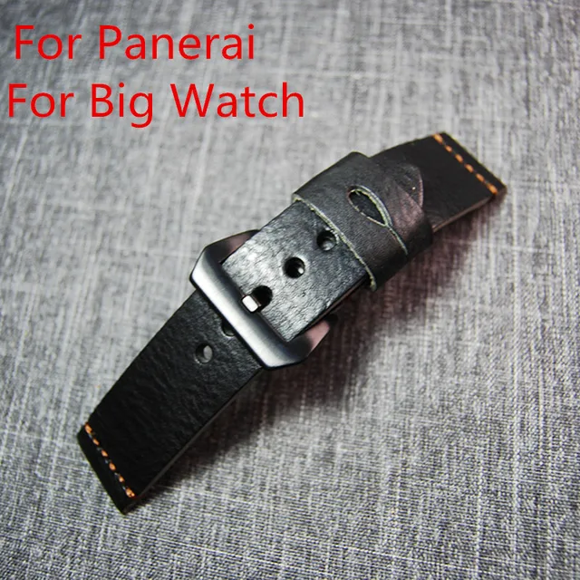 | [해외] 24 미리메터 26 미리메터 수제 블랙 가죽 스크럽 부드러운 손목, 클래식 일반 시계 스트랩 벨트 PAM 큰 시계 |