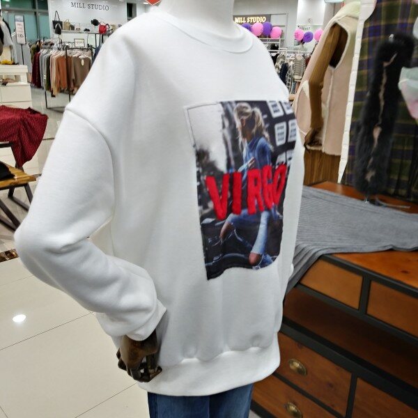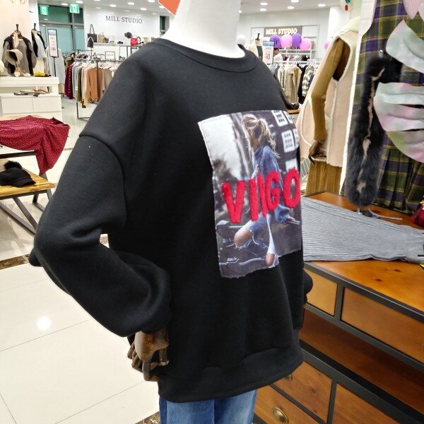 루즈한핏 라인의 프린팅이 멋스러운 맨투맨티로 기장감도 허리선라인이라 편하게 입기좋은 티이에요