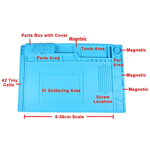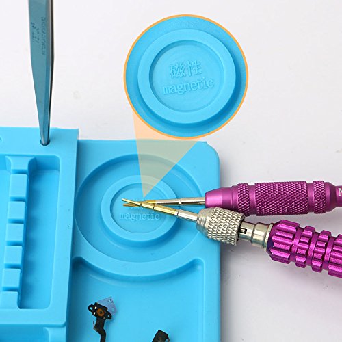♡MULTI-FUNCTION : Silicone Pad Structures With a Circuit Board Location, A Screw Location, 3 Parts Compartments with Covers, A Magnetic Tools Area, 3 Magnetic Parts Areas, 7 Non-Magnetic Parts Areas, A Scale Ruler, And 42 Spare Cells.