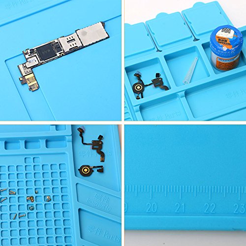 Cellphone Repair Mat, M.Way 45 x 30cm Multi-function Magnetic Heat Insulation Silicone Screw Repair Tools Pad Desk Mat Maintenance Platform for BGA Soldering Iron Repair Station, Watch Repair