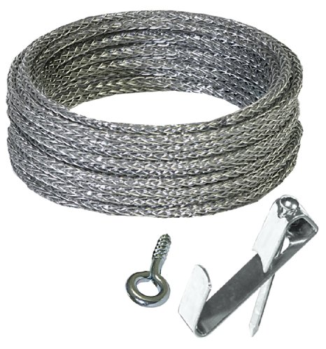 - Includes 10 Foot braided wire, hook with nail and screw eyes