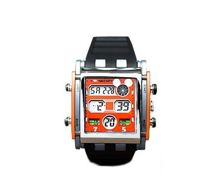 -. Title : ディズニー ミッキーマウス ウォッチ ディズニー 腕時計 レディース キッズ メンズ WATCH Disney ブラック×オレンジ スクエア ミッキー デジタル 時計 ラバーベルト [並行輸入品]