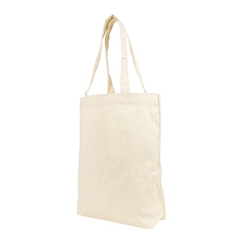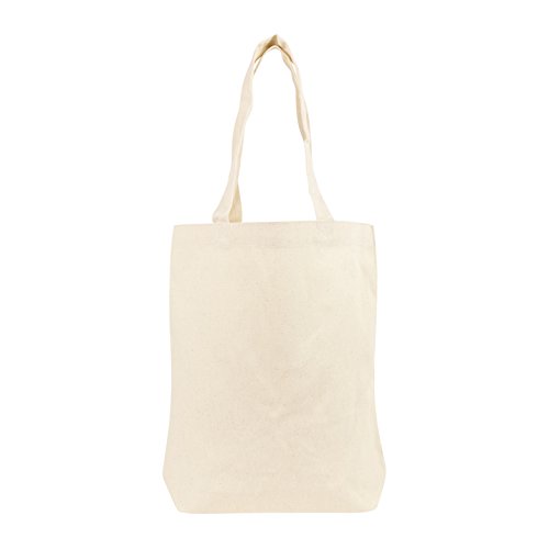 Product Description Simple Cotton tote bag, great for grocery shopping and carrying items. Material: 7 oz Cotton Size: 13-1/4" x 14-3/4" x 2-3/4" Features: Cotton Tote Bag