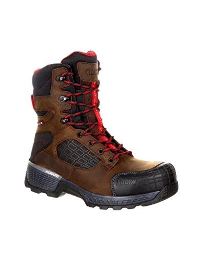 Studio : Rocky Publisher : Rocky Binding : Apparel Product Description Mens Rocky Work Boots: Add some flexibility into your workday! Rocky's new TreadFlex collection has everything you need to work comfortably. This 8" lace up work boot has Oil and Slip Resistant rubber outsoles with our super comfortable Rebound Cushioning Technology for added midsole support. Our patented Comfort Tracks footbed will leave your feet feeling invigorated. These boots come with our one year guaranteed vapor pass waterproof technology, as well as reflective webbing for added safety. High quality full grain leathers and an ASTM certified composite toe make for one great boot! Flexible cement construction makes bending and squatting that much easier. Get the TreadFlex collection today! Light and flexible cement construction, ASTM F2413 electrical hazard standard, Molded rubber shell toe and heel guard, Abrasion-resistant outsole, Rocky Rebound Comfort technology for energy return, Comfort Track footbed, Protective molded-rubber heel and toe guards, Reflective webbing for additional safety, 1/2 Inch heel, Chemical resistant outsole and a round toe. RKK0240 0