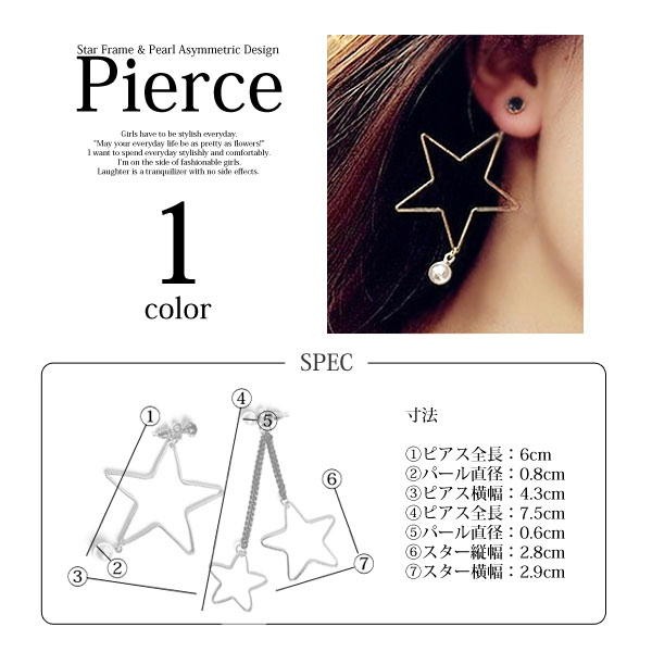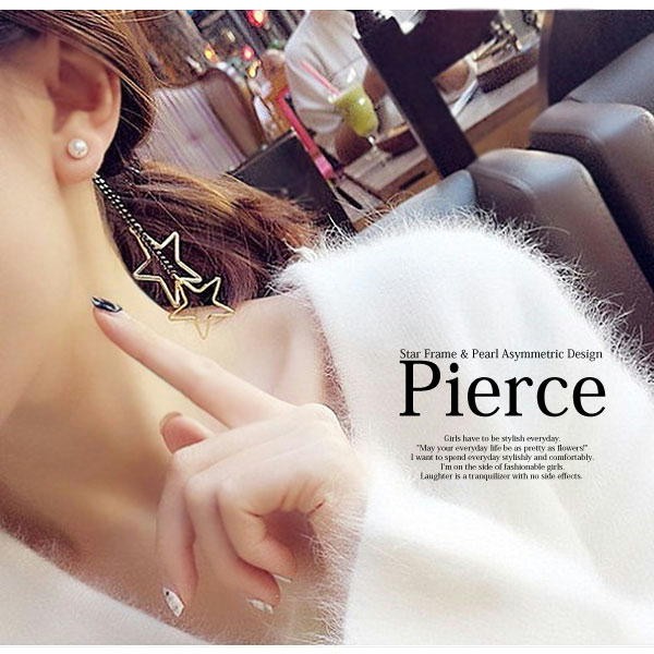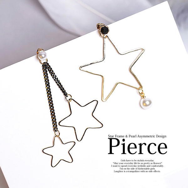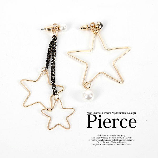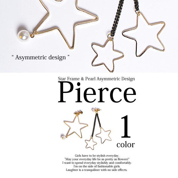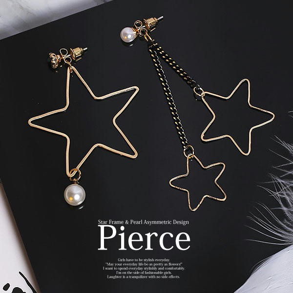 <<スーパーSUMMER SALE>>★左右違うデザインのアシンメントリーピアス!★星のフレームデザインがカワイイピアス!パールのアクセントもとってもかわいい!左右で違うデザインがとってもおしゃれなアイテムです。■商品詳細■画像8枚目を参照※注意事項※商品画像はできる限り実物の色に近づけておりますが、モニター・パソコン等の画像解像度により実際の商品と多少色味が異なる場合がございます。サイズは平置きサイズとなりますので、測り方により誤差が出る場合がございます。予めご了承くださいますようお願いいたします。