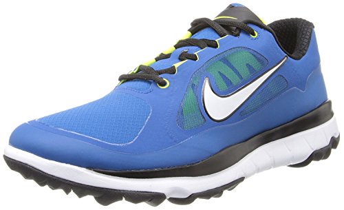 Studio : Nike Publisher : Nike Binding : Apparel Product Description The Nike FI Impact golf shoe is designed to mimic and conform to the natural motion of the foot while delivering all the protection and traction of a lightweight performance golf shoe. This allows you to keep contact with the ground longer, better harnessing the energy of the foot to the shoe and, therefore, the shoe to the ground for more control and power with every shot. Features:Mesh upper offers increased flexibility with breathability to keep feet cool, dry and comfortable.Nike Dynamic Fit system eliminates the space between the foot and the shoe for unparalleled comfort, no matter foot size or shape.Free-Inspired outsole with flex grooves and rubber traction podsMolded sockliner for cushioning supportNike Free-Inspired last Brand: NikeStyle: Golf shoesModel: 611510-400Print: Solid, with accentsClosure: Lace-upFootbed: Slightly paddedHeel height: 0.5 inchSole: Full-length TPU integrated textured soleMaterials: Premium mesh Size: 10.5, 10, 9.5, 11.5, 9, 11, 12Color: White, Blue, Green 0