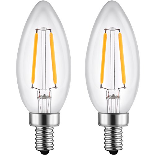 LETO B11 2W Filament Candelabra Clear LED Bulbs,E12 Base, Hight Efficientcy, 360 LED Candle Bulbs, 2 Pack