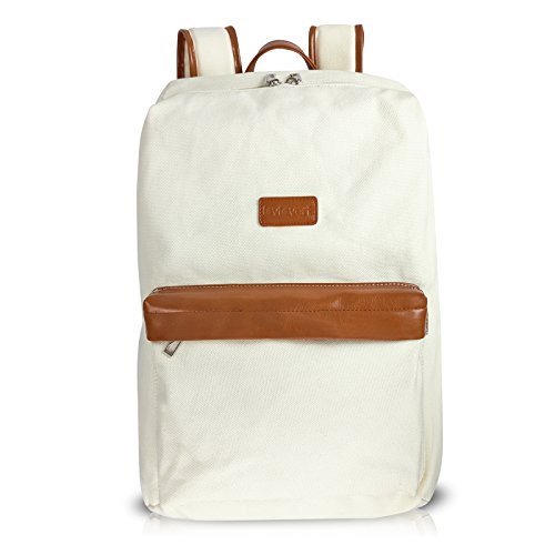 -. Feature : STURDY CANVAS & PREMIUM PU LEATHER - You'll love it as soon as you get this backpack. Made of high density canvas and premium PU leather, Lavievert's canvas backpack is sturdy, durable and stylish, easily carries your gear for years to come. / ROOMY COMPARTMENT FOR STORAGE - A single main compartment is roomy enough to hold your 15 inch laptop securely inside. There is enough space in interior compartment to store all your textbooks, spiral notebooks, paperbacks, stationery, clothes, towel, travel toiletry, or anything you want to take with you. Two interior slip pockets are designed to keep your phone, wallet, cards, headset, etc. / FRONT POCKET FOR ORGANIZATION - A zippered front pocket is designed with high quality brown PU leather, adding more room for storing your pens and pencils, keys, transit cards or other necessary gadgets. Brown PU leather matches with white canvas, amazing for school, travel, camping, sightseeing, shopping, or daily use. / PADDED SHOULDERS & TWO-WAY ZIPPERS - Adjustable padded shoulder straps help relieve pressure on shoulders, giving you a comfortable and happy journey wherever you go. Dual access zipper pullers are easy and convenient to be slide smoothly. / TRUSTY LAVIEVERT BRAND - With "lavievert" logo on front PU leather and zipper pullers, you can recognize Lavievert brand easily.