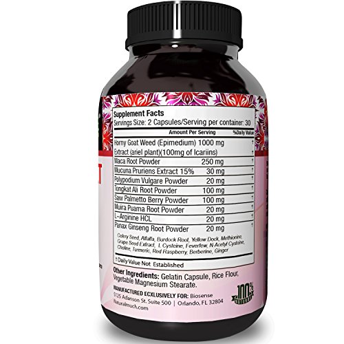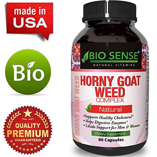 Horny Goat Weed extract is one of the most famous herbal aphrodisiacs from the east! This natural libido enhancer for women and men helps restore your sex drive naturally. If you've been finding it hard to get in the mood, then reignite passions and boost desire with this extra strength formula. Try Horny Goat Weed capsules today! These libido pills work fast, while also boosting performance in bed. Enjoy better stamina, lasting power, and recovery time by taking our Horny Goat Weed complex regularly. Best results when combined with a healthy lifestyle. Not only does Horny Goat Weed support libido and drive, it is also a natural testosterone booster and muscle builder for men. This formula contains synergistic herbal extracts like Maca Root + Tongkat Ali + Ginseng which further enhance the libido increasing benefits of Horny Goat Weed extract. Enjoy the best that nature has to offer! All items sold by Bio Sense are made in the United States by GMP certified labs, using the purest ingredients. You can count on the quality of our libido supplements and other health products.Feature