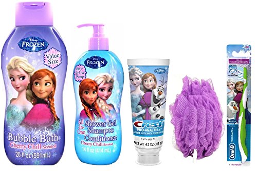 Disney Frozen Cherry Chill Bubble Bath 20 fl oz + All in one Shampoo & Conditioner Shower Gel 14 fl oz + Pro-Health Crest Toothpaste & Toothbrush plus a...