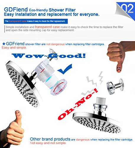♥EASY INSTALLUTION – GDFriend shower filter is really easy, just dispatch outlet of your shower head and attached our GDFriend Shower Filter. Even senior or woman can install it easy. G1/2” Outlet is universal types, so you can install every types of water outlet and shower head.