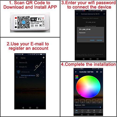 - 3 Control Mode -- [Alexa Mode] Speak to Amazon Alexa Echo, you can ask the light strip to turn on/off, change colors or dim. [WiFi Mode] It allows you to control the light with your smart phone through "Magic Home Pro" App. [Remote Controller] You can also control the LED light with the 24 keys IR remote controller.