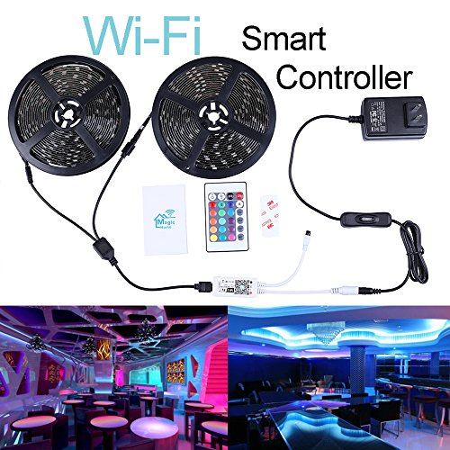 Miheal Wifi Wireless Smart Phone Controlled Led Strip Light Kit with DC12V UL Listed Power Supply Waterproof SMD 5050 32.8Ft(10M) 300leds RGB Music LED Light Strip Work with Android, IOS and Alexa