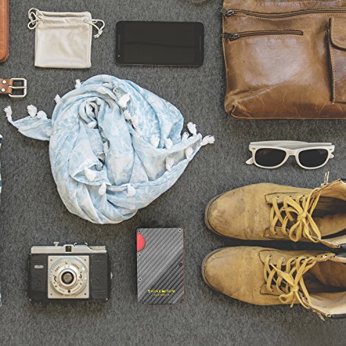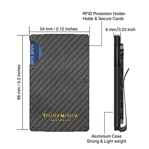 -. Feature : HIGHEST QUALITY: LIFETIME INTERNATIONAL WARRANTY. Made from 3000 twill carbon fiber & Aircraft Grade aluminum combined to give you durability and sleek 3D look. The slender and futuristic Japanese Made carbon fiber outer plates are 16% lighter and 2.5 times stronger than most aluminum wallets available in the market. / ULTRA SLIM FIT can still hold up to 12 cards with the long-lasting elastic design feature. A little tight before use, within 4 weeks of regular use, the band is perfectly conditioned to keep your important cards safe, secure and protected. Use only the 80% of cards you use regularly and eliminate the rest! After trialling the wallet for everyday use, we found the sweet spot to be 8 cards or lower only. How low can you go? / STYLISH GIFT BOX great as the ultimate gift to your boyfriend, husband, or father. Women also find it stylish and luxury enough to carry in their handbags. / REMOVABLE MONEY CLIP for cashless carrying that also comes with a tool to adjust for left or right-handed use making it the perfect minimalist wallet for you or as a gift for that hard to buy for friend. / RFID BLOCKING: US GOVT. FIPS 201 approved to prevent your data from identity thefts. We also offer a fully LIFETIME WARRANTY and money back guarantee!