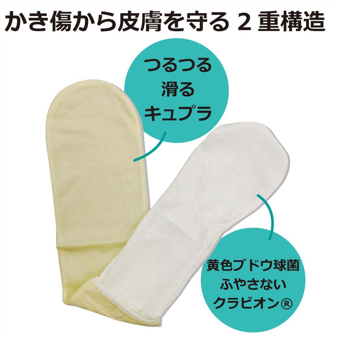 "Doctor mittone it itakko WU" is a double mittle which prevents scratching corresponding to atopic skin using natural antibacterial deodorant material chitopoly.