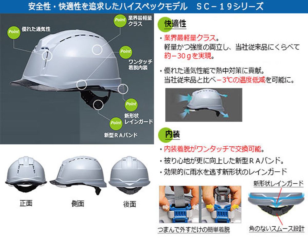 ● Ventilation (ventilation hole): Ventilation in the front and rear · right and left (ventilation hole) effectively reduces stuffiness of the head.
