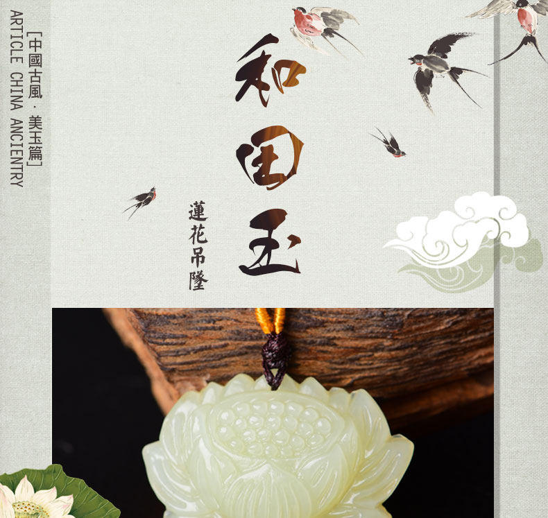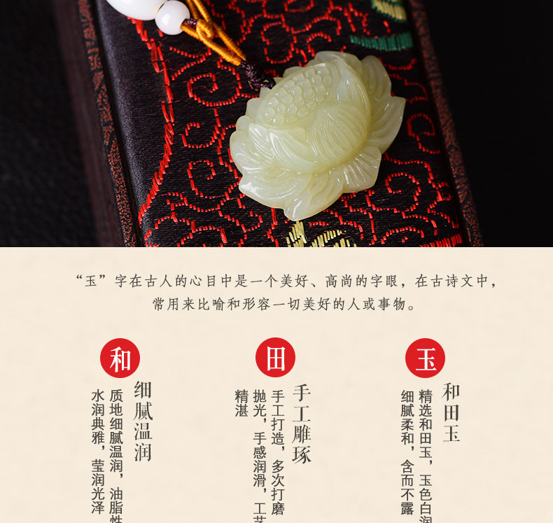 开光和田玉莲花吊坠白玉男女款项链花开富贵情侣挂件玉佩饰品礼物