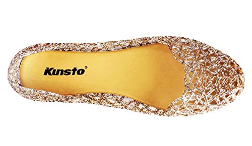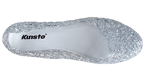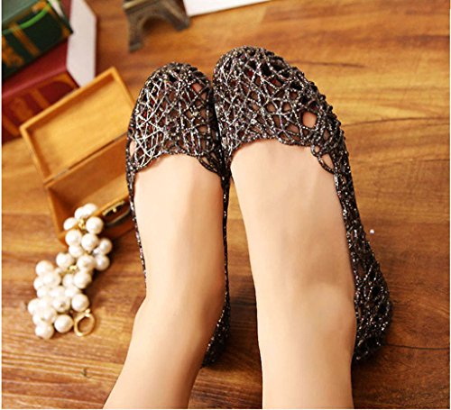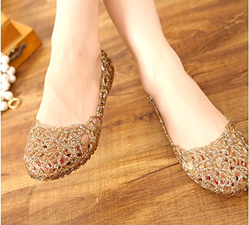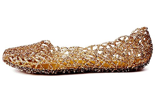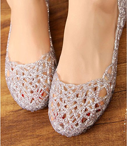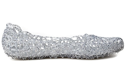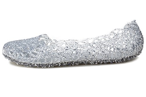 Binding : Apparel Product Description Inspired by the Beijing Olympic Stadium Bird's Nest,these shoes have very unique and chic look, the PVC jelly is ultra solf and flexible, not only provide you optimum comfort while walking,but also help reduce stress, pain, fatigue.The sequin in the material make the shoe shiny ang pretty.Personally,I like silver color most,put on it kind of like put on the crystal shoe of Cinderella.