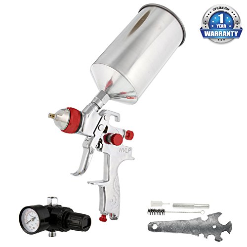 [Product Information]- TCP Global Brand High Performance HVLP Spray Gun with a 1.4 mm Fluid Tip, 1 Liter Aluminum Cup and a Air Regulator