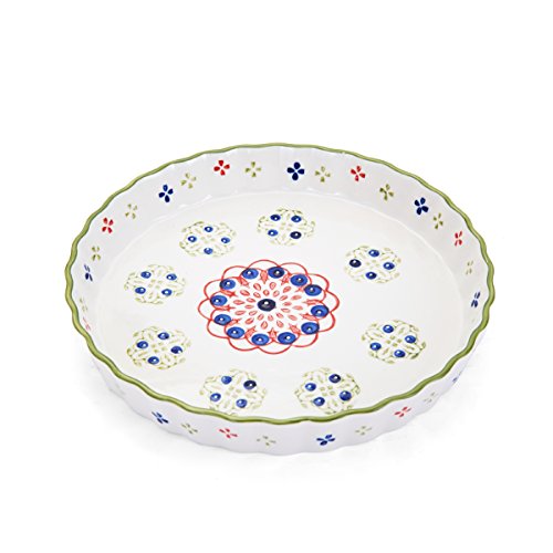 Pfaltzgraff Pink/Green Ceramic Round Pie Plate, 11-Inch