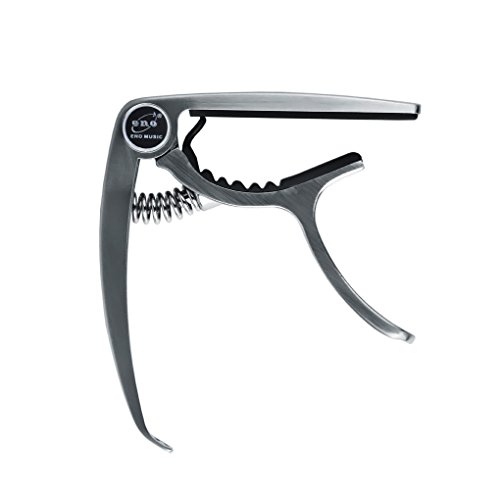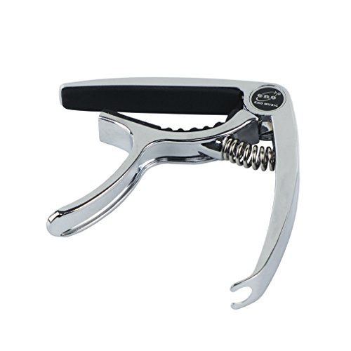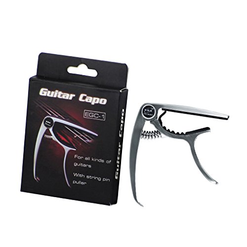 Product Description Feature:* The capo has a great performance for all kind of guitar,can clamp firmly onto most fretboards without buzz or loss of tuning.* With smooth surface and ergonomic handle,it is made of zinc alloy, lightweight but durable.* Strong spring is made of stainless steel,with great acid resistance,will help hold all of the strings down.* Soft silicone padding helps to protect the strings and fretboard without compromising on the quality of pitch and tone.* Easy to use,quickly and easily released and repositioned without disturbing the tuning.Can be repositioned with just one hand.* There is a string pin puller at the end of the handle, which can help you to remove string pins without making damage to your guitar.Specification:Fits for all kind of electric, acoustic and classical guitarMaterial: Handle is made of high quality zinc alloy, with soft silicone padding to protect your guitar perfectly.Color: ChromePackage include:1 x Packaged Guitar Capo 0