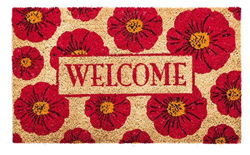 -. Feature : These colorful flowers will welcome all to your home / Woven from natural coconut fiber / Recycled rubber backing / Weather resistant with colorfast dye / Measures 28 x 0.4 x 16 inches