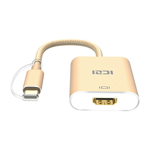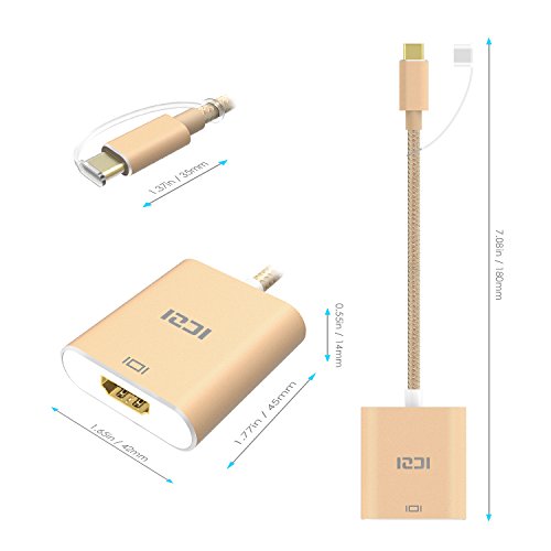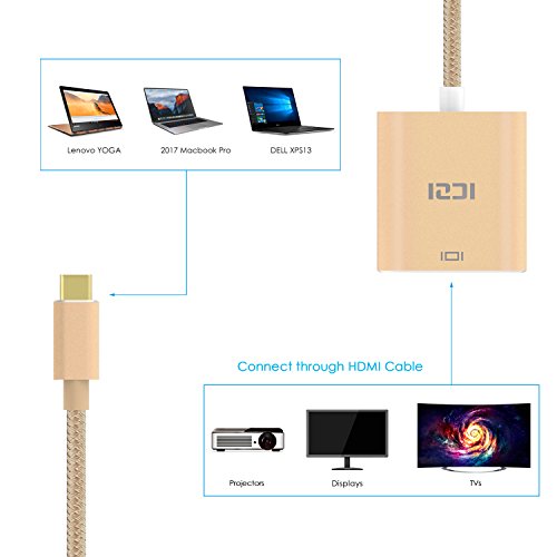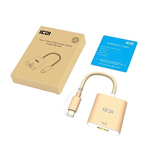 USB 3.1 Type C to HDMI, ICZI USB-C & Thunderbolt 3 Port Compatible 4K UHD USB C to HDMI Adapter Aluminum Body for USB-C Device New MacBook ChromeBook Pixel Dell Lumia 950/950XL and More (Gold)