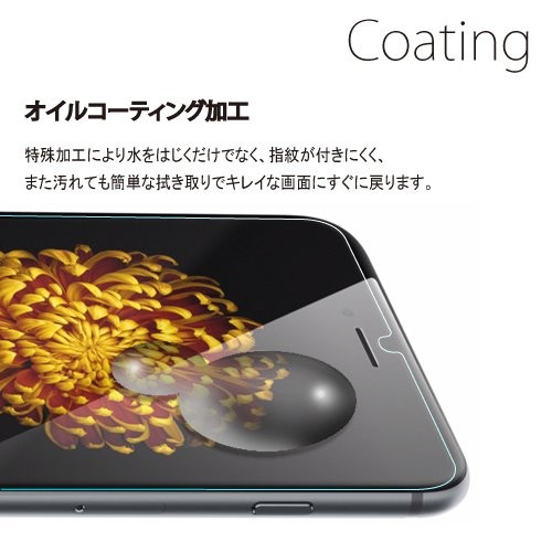 ■一般的なフィルムより3倍強い表面強度:9H>表面強度は9Hで、一般的なフィルムより3倍の強度。カッターや鍵などの鋭利なものとの摩擦にも傷にならない程、強力な表面強度を持っています。■油分や指紋などの汚れに強いオレオフォビックコーティング処理オレオフォビックコーティングがされているので、油汚れと指紋が付きにくく、またふき取りやすいのが特徴です。■鮮明な画質と柔らかなタッチ感化学強化処理されたガラスは、透過率が高く非常にクリアです。特殊なシリコン粘着剤を使用しているので貼り付けやすく、ソフトなタッチ感を楽しめます。■飛散防止過度な圧力等により万一割れてしまった場合でも、細かい破片になり尖らない特性があるので、一般的な通常のガラス製品よりも安全です。■ラウンドエッジ加工があることで、強化ガラスフィルムの性能が上がる!