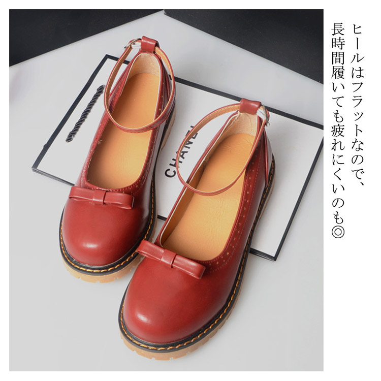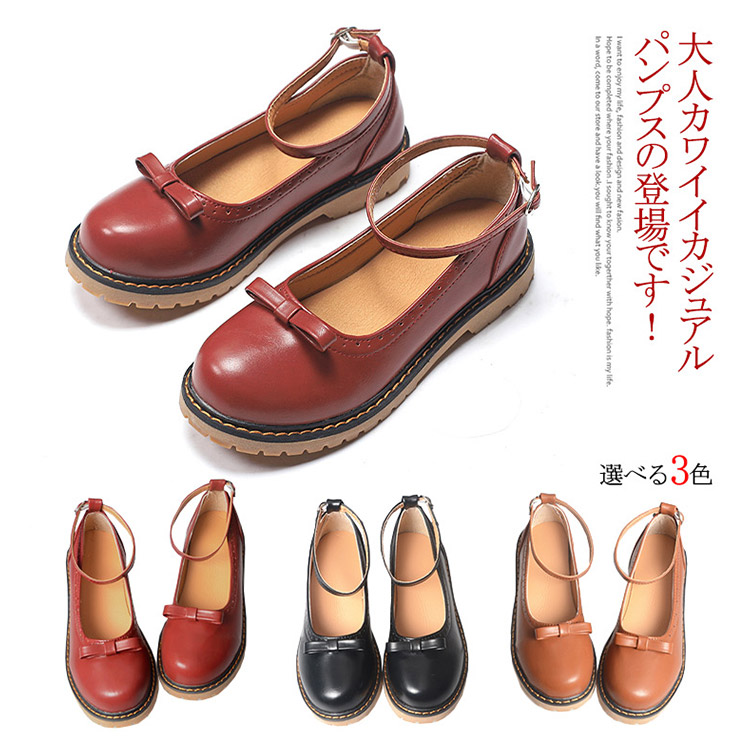 | 大人カワイイカジュアルパンプスの登場です!足元には同色のリボンモチーフが 素敵でしょ。ヒールはフラットなので、長時間履いても疲れにくいのも◎ | |