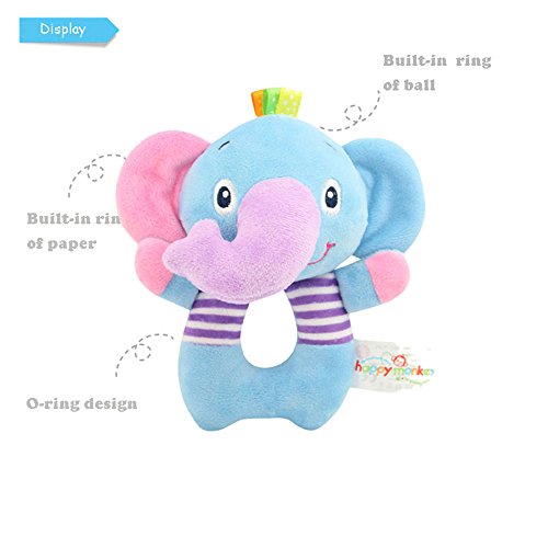 1 x TOLOLO Elephant Hand Rattle Plush Toy for Newborn Baby