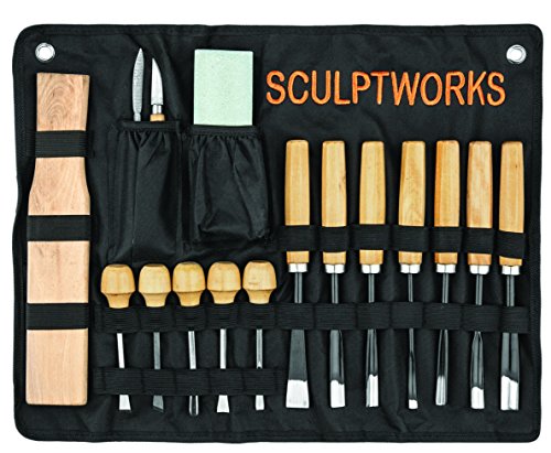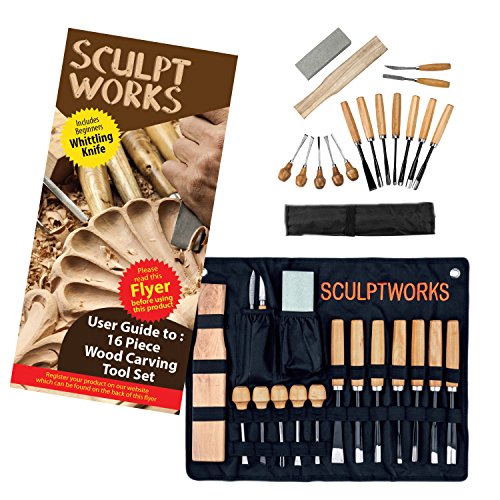 Whittling Wood Carving Tool Set 16 Piece from SculptWorks includes Beginners Whittling knife & is perfect for the first time Woodsculpting novice plus all accessories with woodwork Informational Flyer