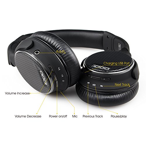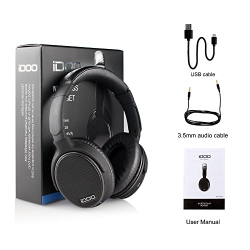 iDOO Bluetooth Over-ear Wired/Wireless Headphones with Built-in Microphone - Black