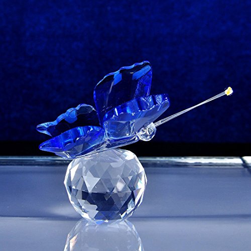 Waltz&F Crystal Butterfly Figurine Paperweight with Crystal Ball for Home Decoration,Blue