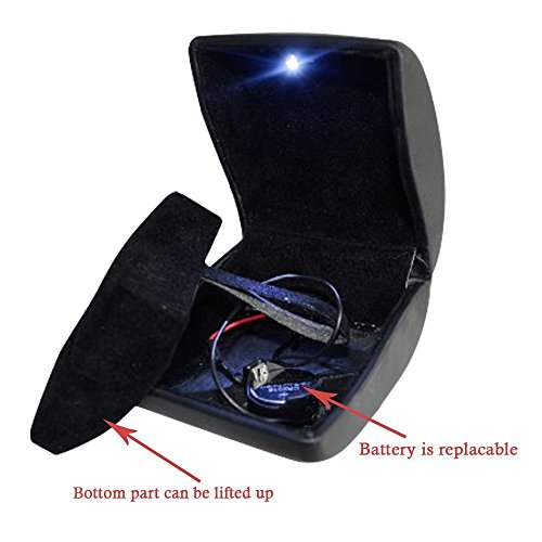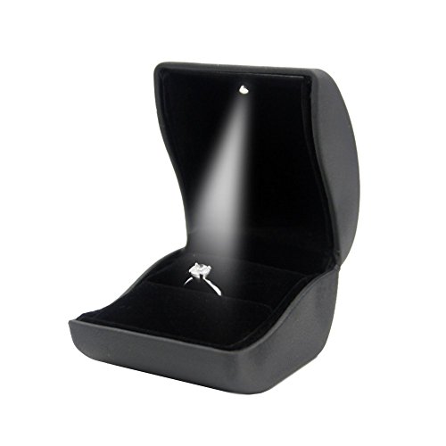 - BLACK color, without any logo. It will help you create a romantic atmosphere with the LED Light when propose or engagement. It will give your lover a big surprise when opening the ring box. A great gift for your mother, girlfriend , wife, daughter, colleague, friend or any other special woman in your life. Lightweight and portable suit for carring out or keeping in your suitcase or handbag.