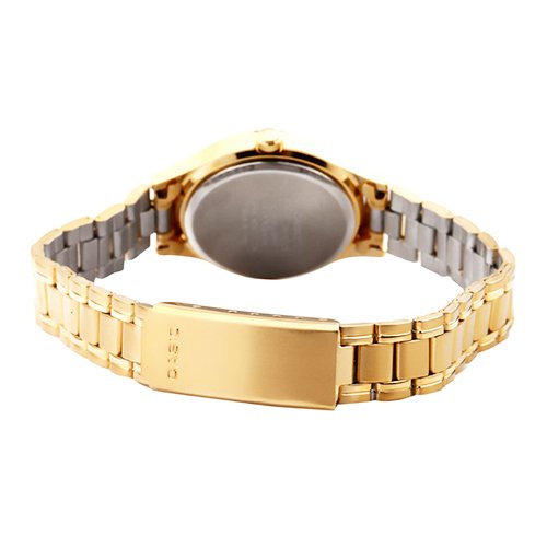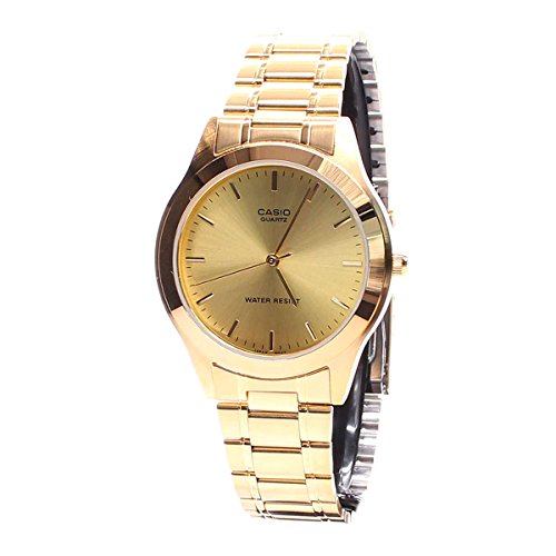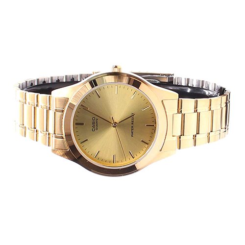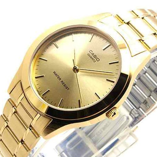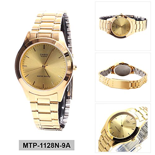 Brand, Seller, or Collection Name:Casio Model number:EAW-MTP-1128N-9A Part Number:MTP-1128N-9A_WW Item Shape:Round Dial window material type:Mineral Display Type:Analog and digital Case material:Gold Tone Case diameter:36 millimeters Case Thickness:7 millimeters Band Material:Stainless Steel Band width:18 millimeters Band Color:Gold tone Dial color:Gold tone Special features:N/A Movement:Quartz Water resistant depth:100 Meters
