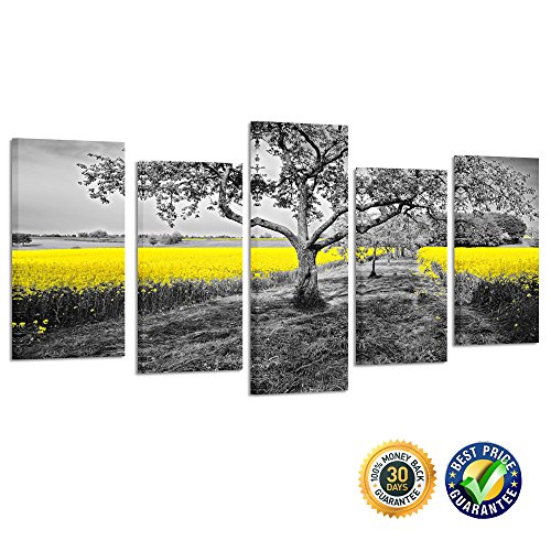 -. Title : Kreative Arts - 5 Panel Canvas Wall Art Shining Yellow Oilseed Rape Fields in Black and White Landscape Giclee Canvas P.R.Ints Landscape Artwork Pictures Paintings on Canvas for Home Decor Ready to Hang