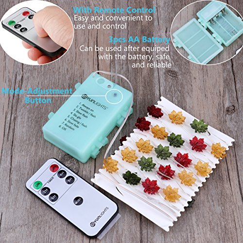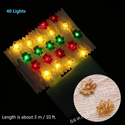 YUNLIGHTS Autumn Leaf String Lights 40 LEDs with 7 Modes 9.8ft Copper Wire,String Lights Battery powered for Thanksgiving and Birthday Party Decoration