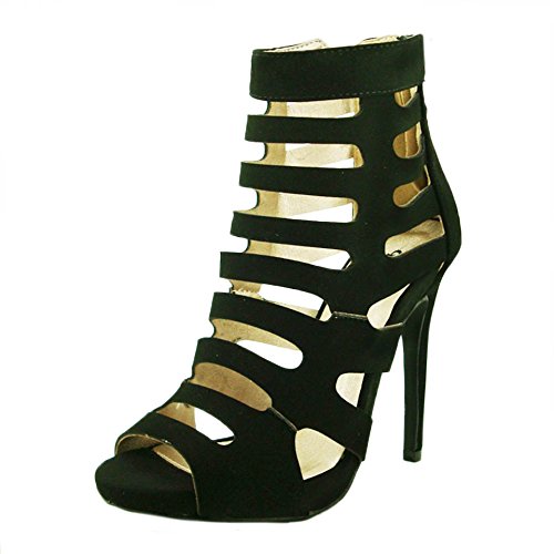 (Qupid)/Men's/Lace-Ups/DIRECT FROM USA/Qupid Women's Glee16 Nubuck Strappy Caged Peep Toe Ankle Bootie
