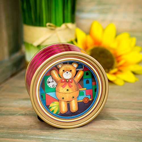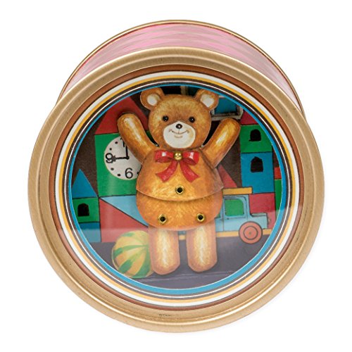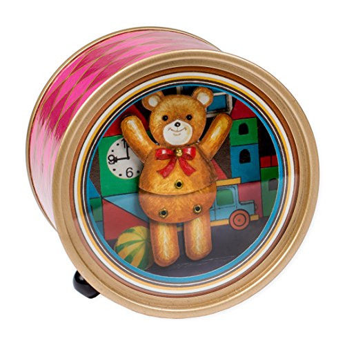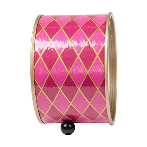 Dancing Bear Pink Argyle Drum Hardboard Musical Figurine Plays Tune Toy Land