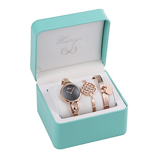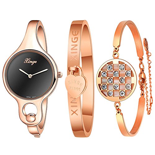 -. Title : Xinge Women Black Rose Gold Tone Bangle Watch and Bracelet Set XG3678BR&0620